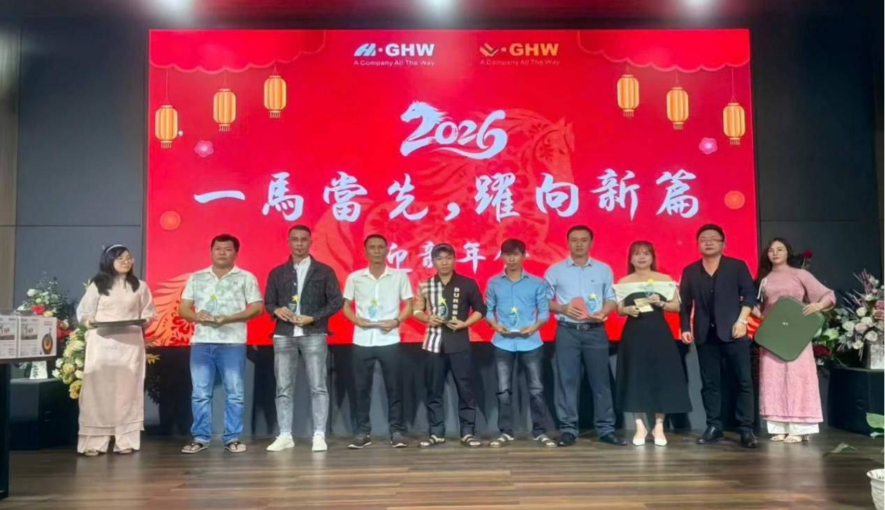 Ngày 6 tháng 2 năm 2026, Công ty TNHH GHW (Việt Nam) đã long trọng tổ chức buổi tiệc tất niên chào đón năm mới 2026 với chủ đề “Tiên phong dẫn đầu – Rực sáng chương mới”. Tham dự sự kiện có ông Yin Yan Bin – Chủ tịch GHW International, ông Zhuang Zhao Hui – Giám đốc điều hành, ông Chen Hua – Giám đốc điều hành, ông Chen Yi Qin – COO Tập đoàn Hanwei, ông Huang Jia Feng – CEO Tập đoàn Đầu tư Toàn cầu Yinfeng Hồng Kông, cùng các lãnh đạo cấp cao của tập đoàn. Bên cạnh đó, công ty còn trân trọng mời đại diện của nhiều tập đoàn lớn và các đối tác chiến lược tại Việt Nam cùng hội tụ, tạo nên một không gian sum họp ấm cúng, trang trọng và gắn kết.