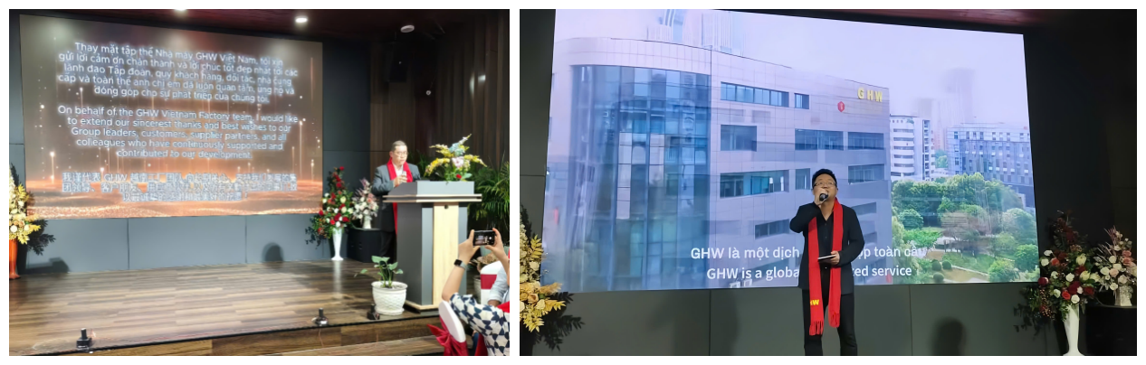 Tiếp đó, ông Zhao Meng – Tổng Giám đốc GHW khu vực Việt Nam, đã có bài phát biểu chúc mừng năm mới. Ông cho biết, cùng với việc các cơ sở sản xuất trong và ngoài nước của GHW tiếp tục được mở rộng và nâng cấp trong năm 2026, tập đoàn đang bước vào một giai đoạn phát triển hoàn toàn mới với tiềm năng to lớn và nhiều cơ hội hội tụ. Tầm nhìn về sự phát triển bền vững và thịnh vượng lâu dài của GHW đã nhận được những tràng pháo tay nồng nhiệt từ toàn thể khách mời.